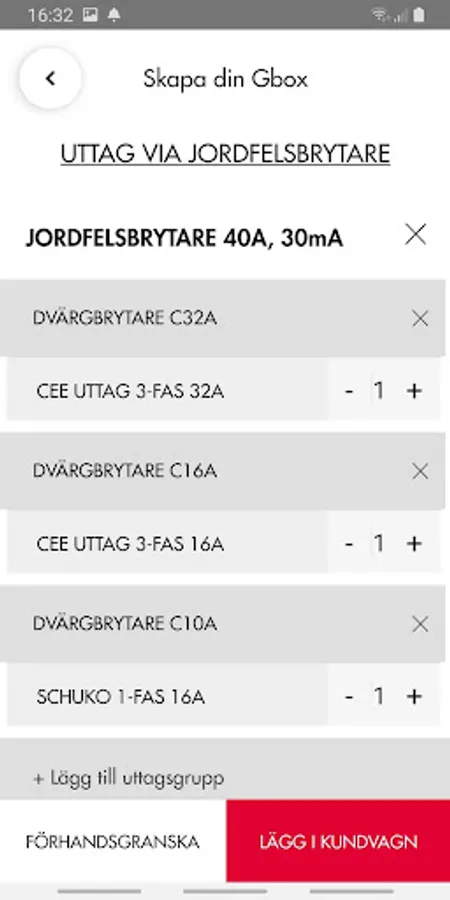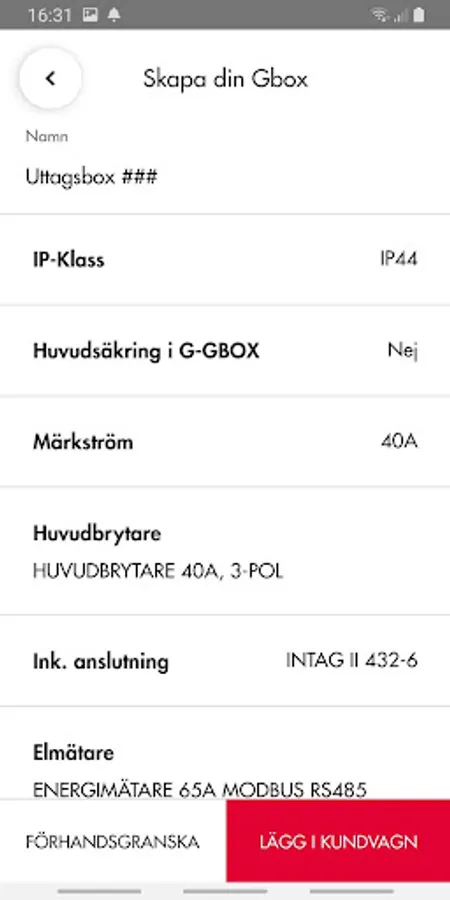 Order your Garo socket directly on the phone. You choose what the socket box should contain and as a logged-in installer you get the price directly.