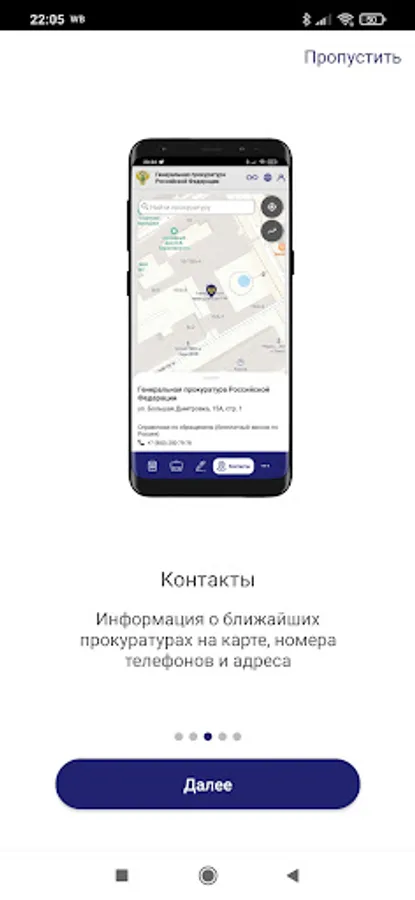 - viewing the contact details of prosecutor's offices throughout the Russian Federation;