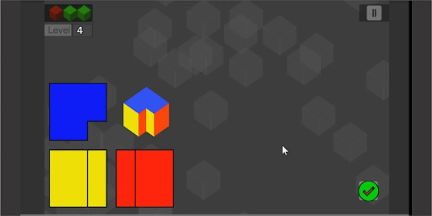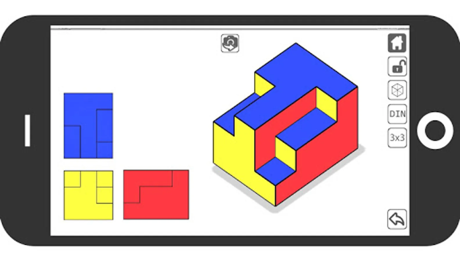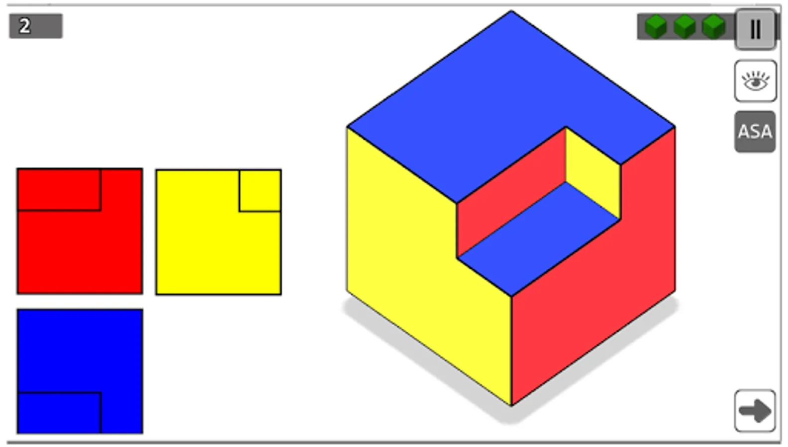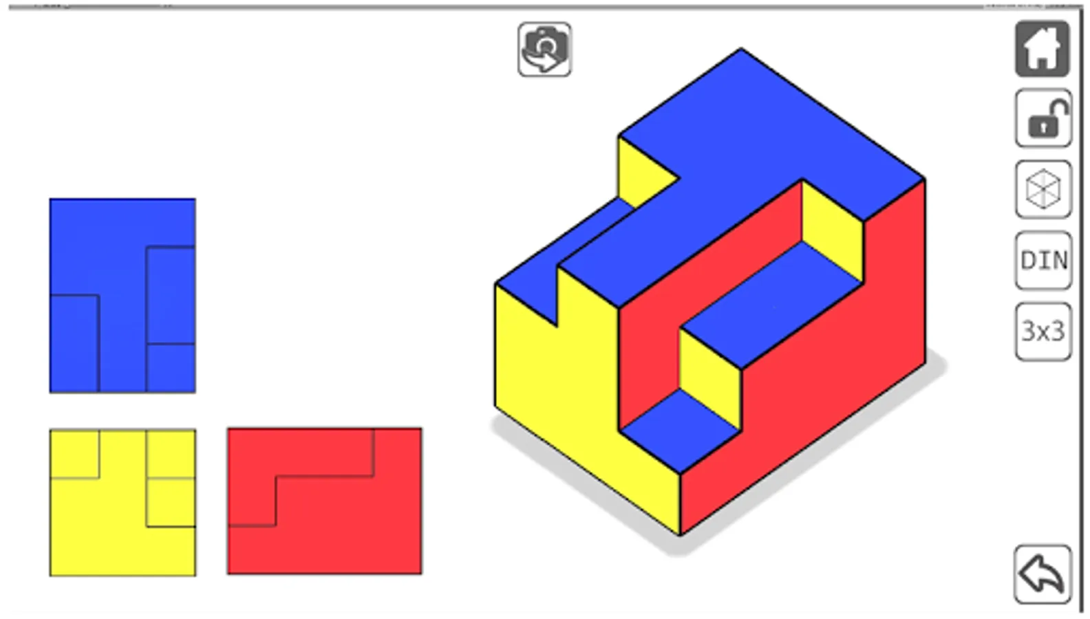 Eliminate the blocks from the cube to form the isometric corresponding to the orthogonal views proposed at each level.