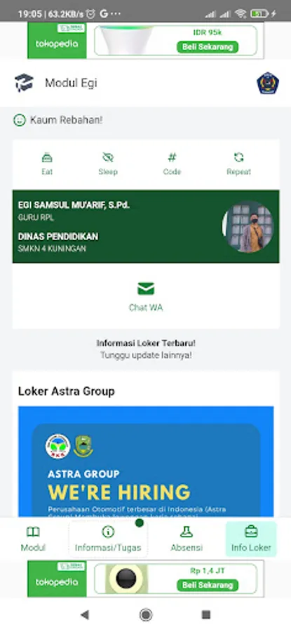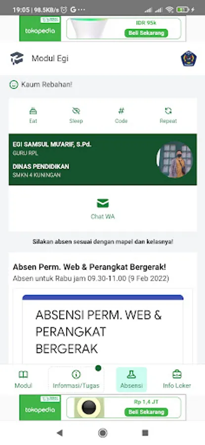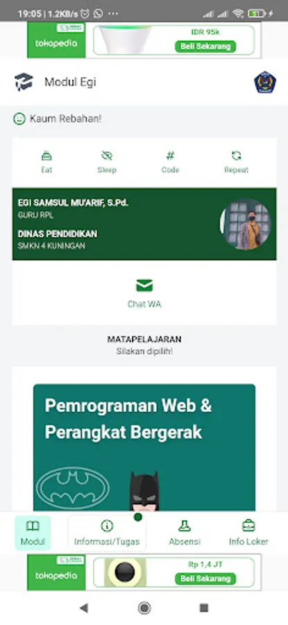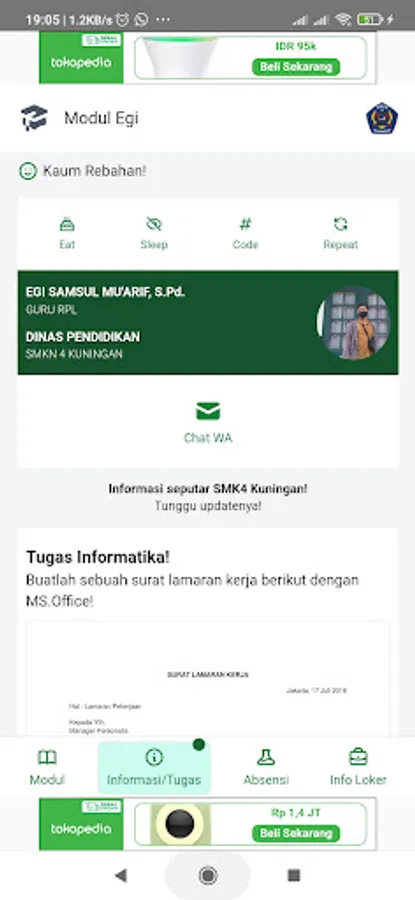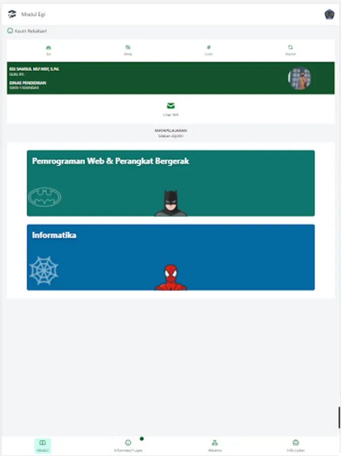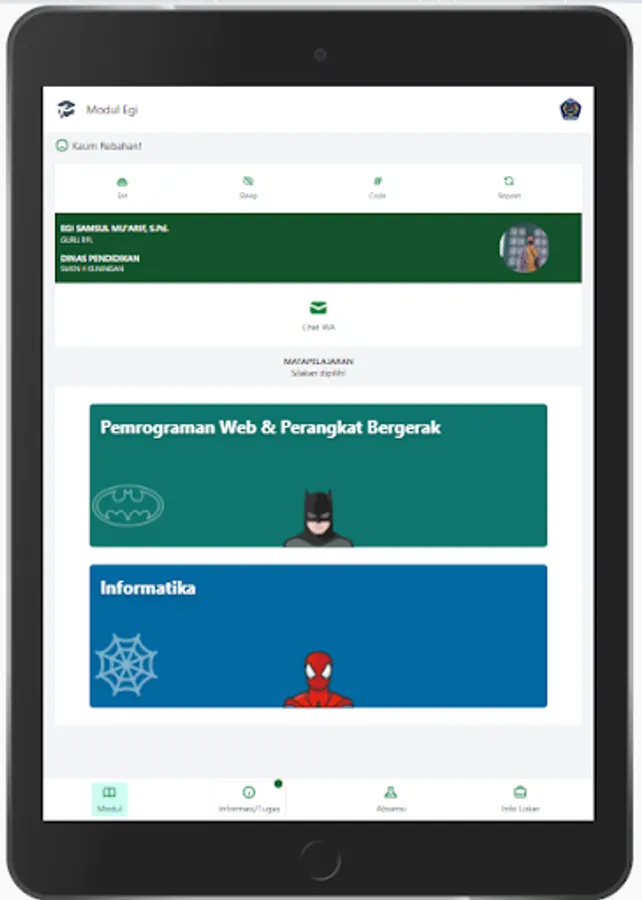 Pak EGI module at SMKN 4 KUNINGAN, Contains teaching materials, assignments to lockers around the school!