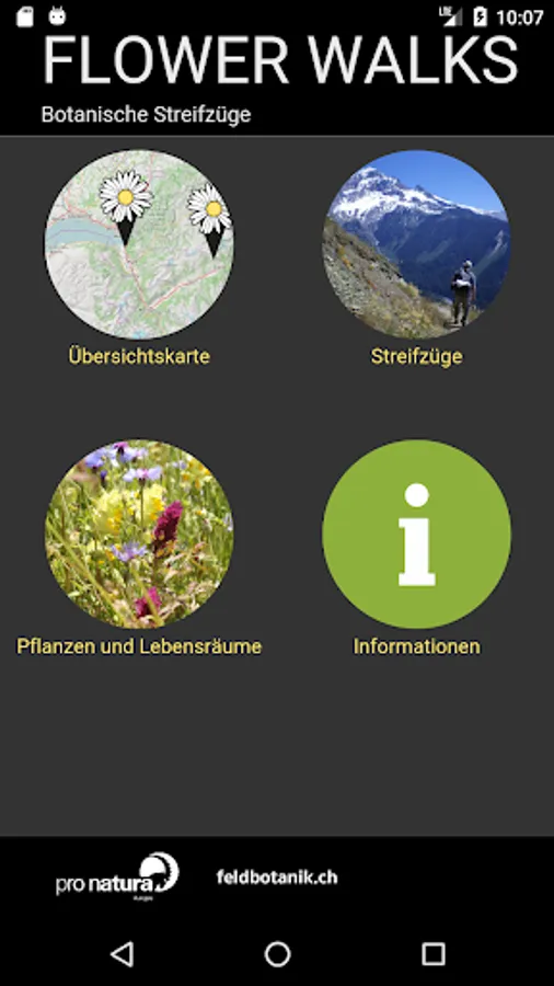 In total, the “Flower Walks” app presents over 1100 plant species and 77 habitats across the country - that corresponds to a quarter of all plant species and habitats known throughout Switzerland. The range of species and the content of the app are tailored to both interested laypeople and advanced botanists.