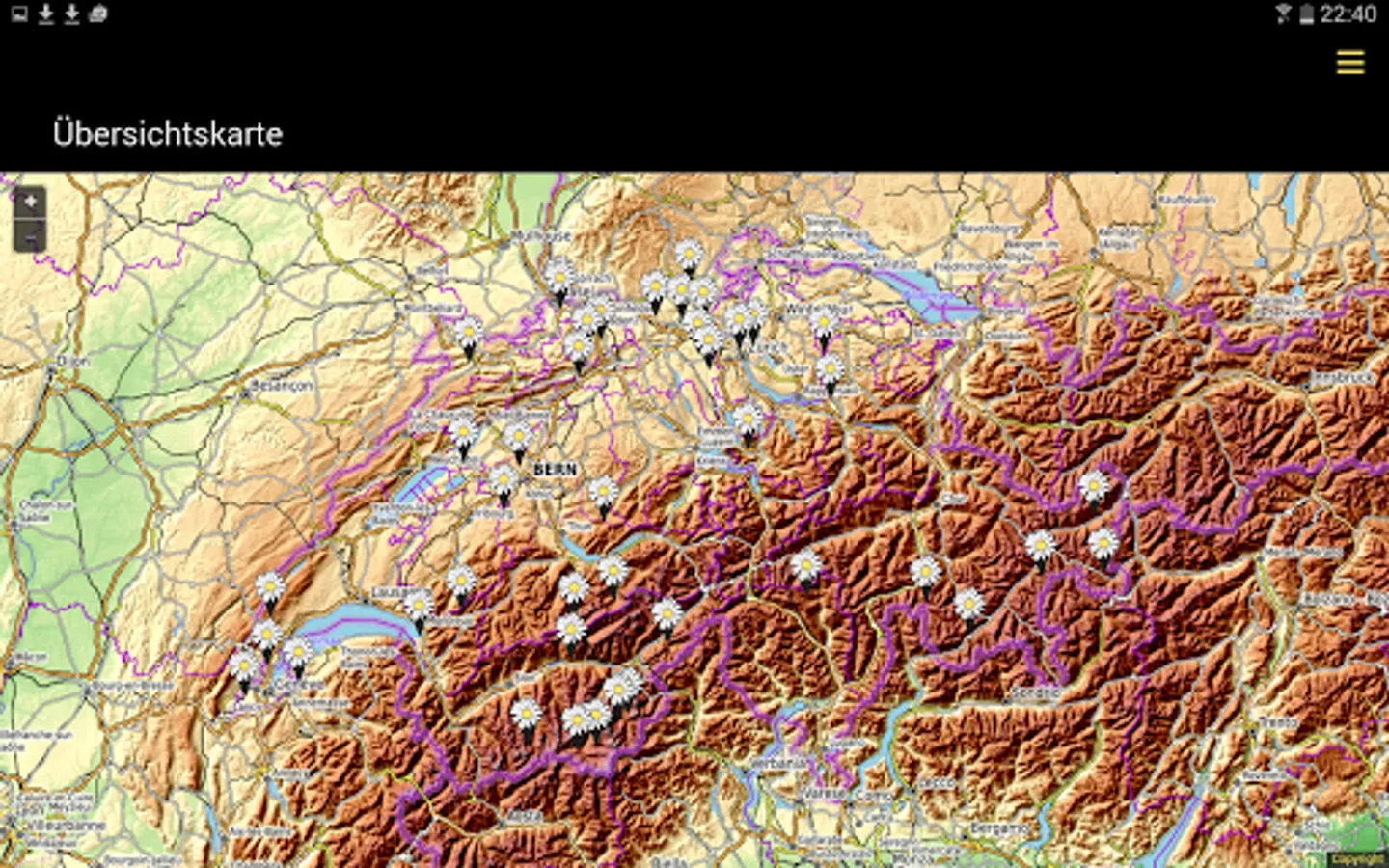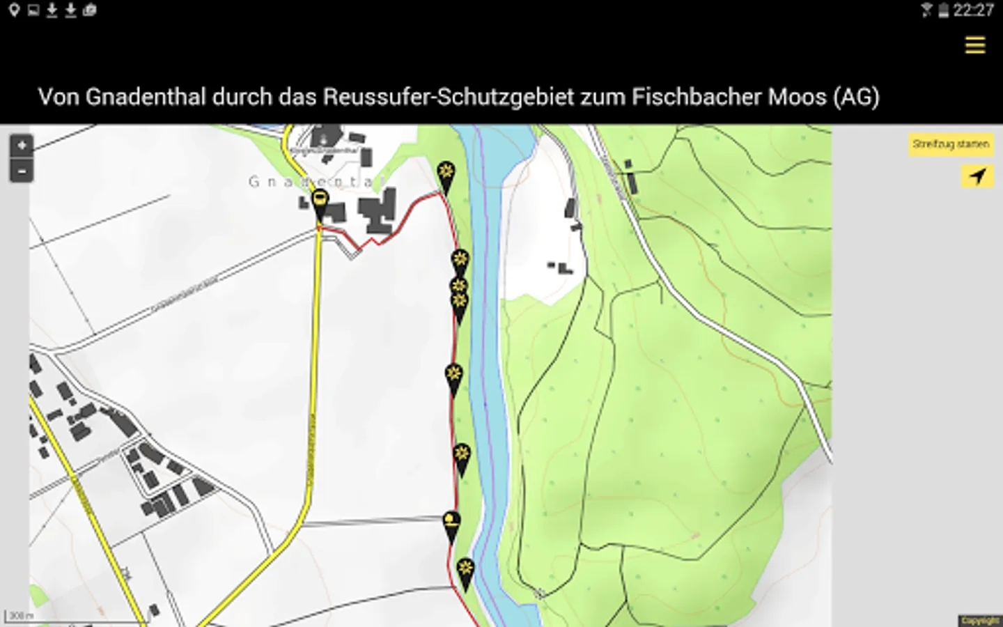 The content of the app is saved offline on the smartphone or tablet so that only GPS tracking is required during the hike.