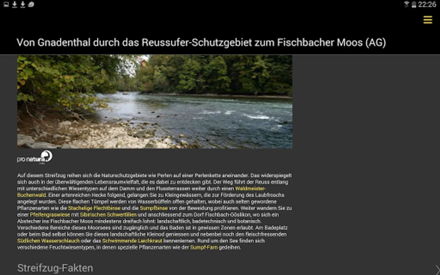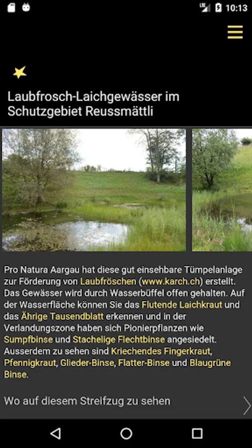 On the forays, plants and habitats are presented with photos and exciting background information if they can be seen by the wayside. In this way, the users of the app can explore the variety of flowers at their own pace on every foray. Interesting facts are explained for each plant species, for example on naming, strategies for attracting pollinators or medicinal use. In addition, the time of flowering, the protection status and the red list status of all species are listed.