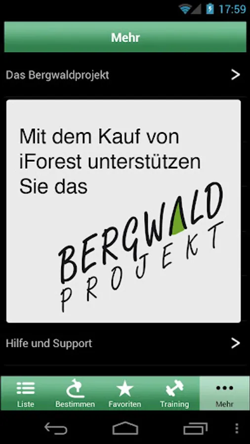 With the purchase of this application, you support the Bergwaldprojekt. 10% of earnings of iForest go directly to the Bergwaldprojekt.