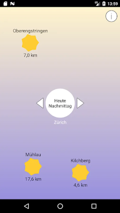 Pflotsh Sun uses data from the SuperHD and ECMWF models in order to find areas where a sunshine duration of at least 50 minutes per hour is forecasted, and displays up to three such places.