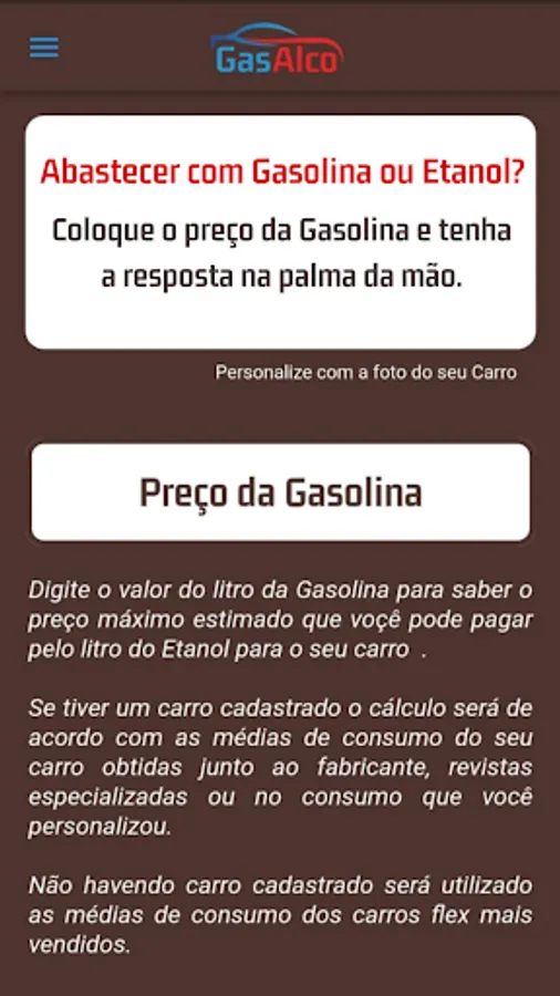 App GasAlco helps in the decision to fill up with gasoline or ethanol and for that it has a simple algorithm that gives information instantly after typing the price of gasoline.
