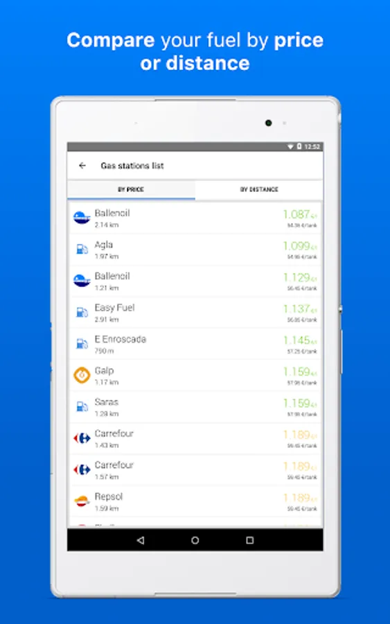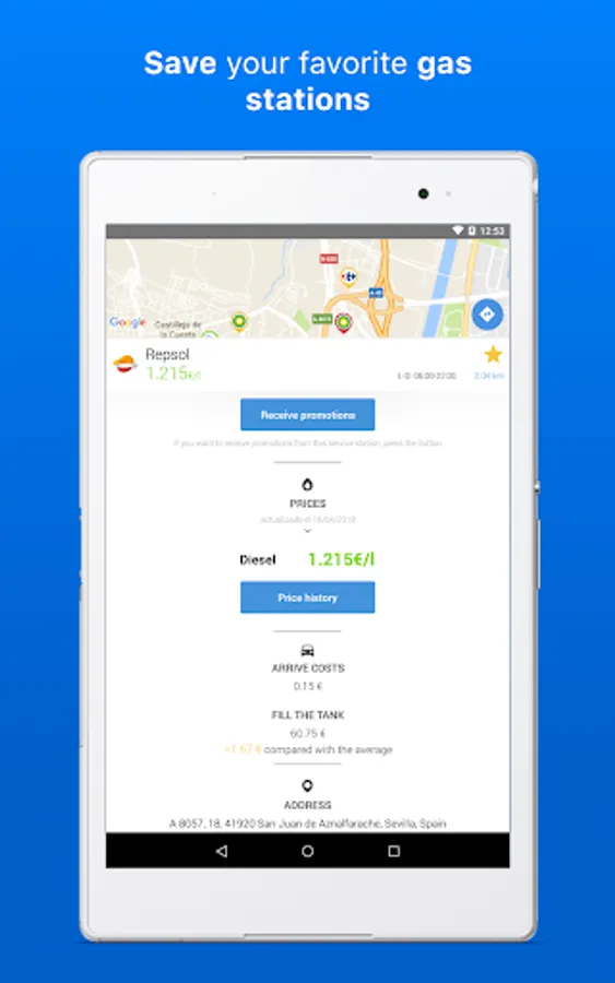 - WIDGET: check easily the information of your favorite gas stations and access them with a single click.