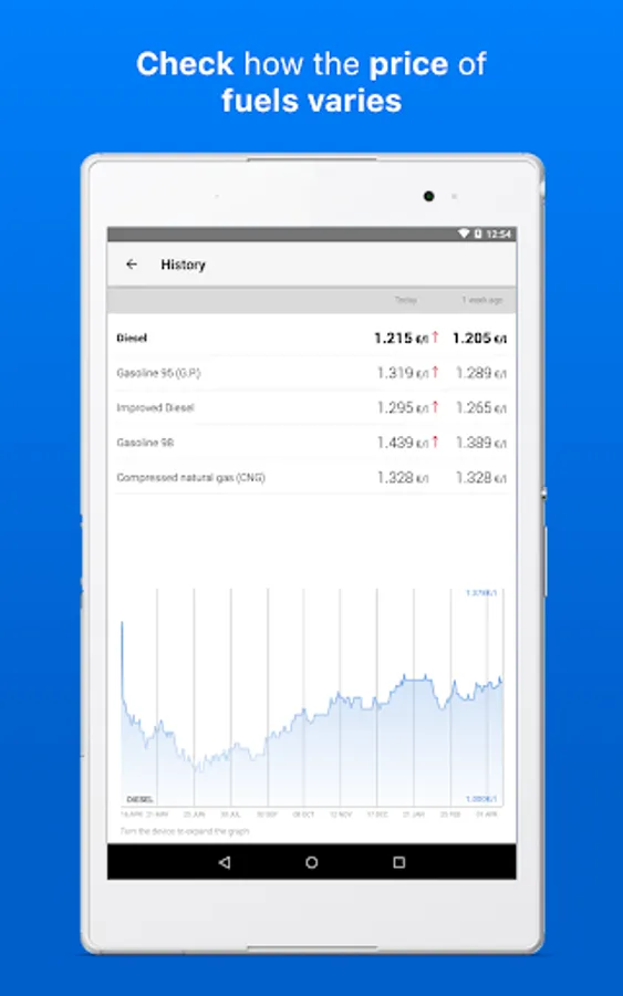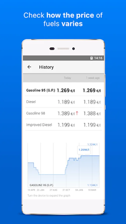 - PRICE HISTORY: check how the price of the gas varies and check when it is the best time to refuel.