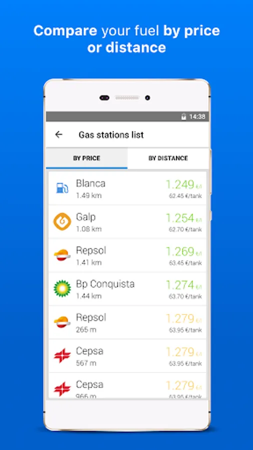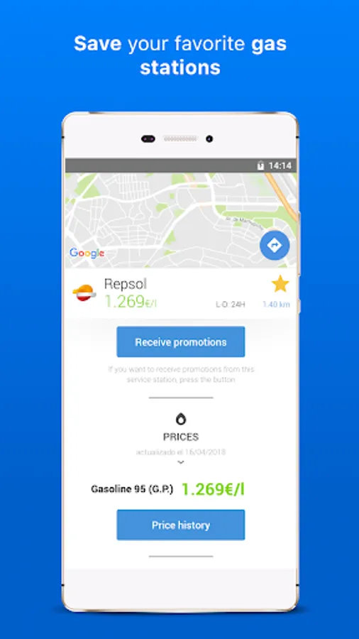 - FAVORITES: save your favorite service stations to have the information of their prices always updated, so you can compare comfortably with other gas stations and check where is the best place to refueling.