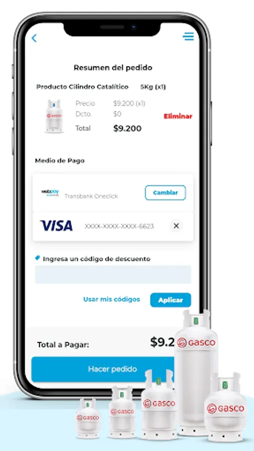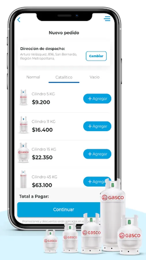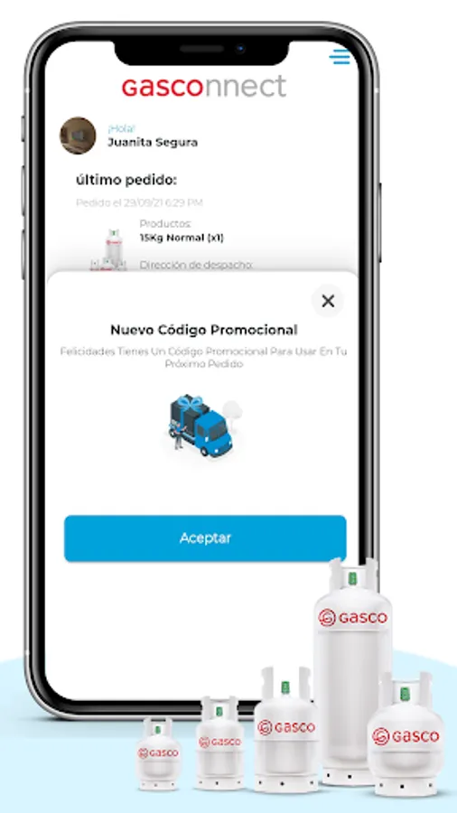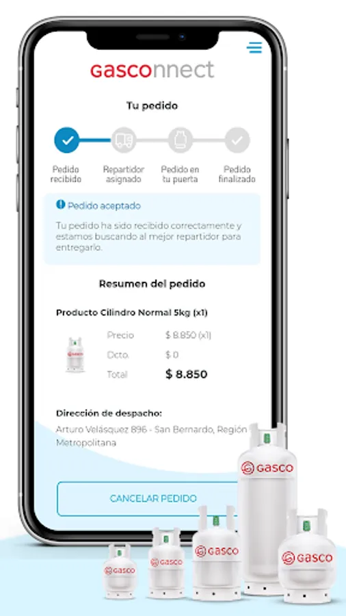 Order Gasco with Gasconnect, the first and only application that allows you to place your order from your smartphone, follow it online on a map and see its route until it reaches your home.