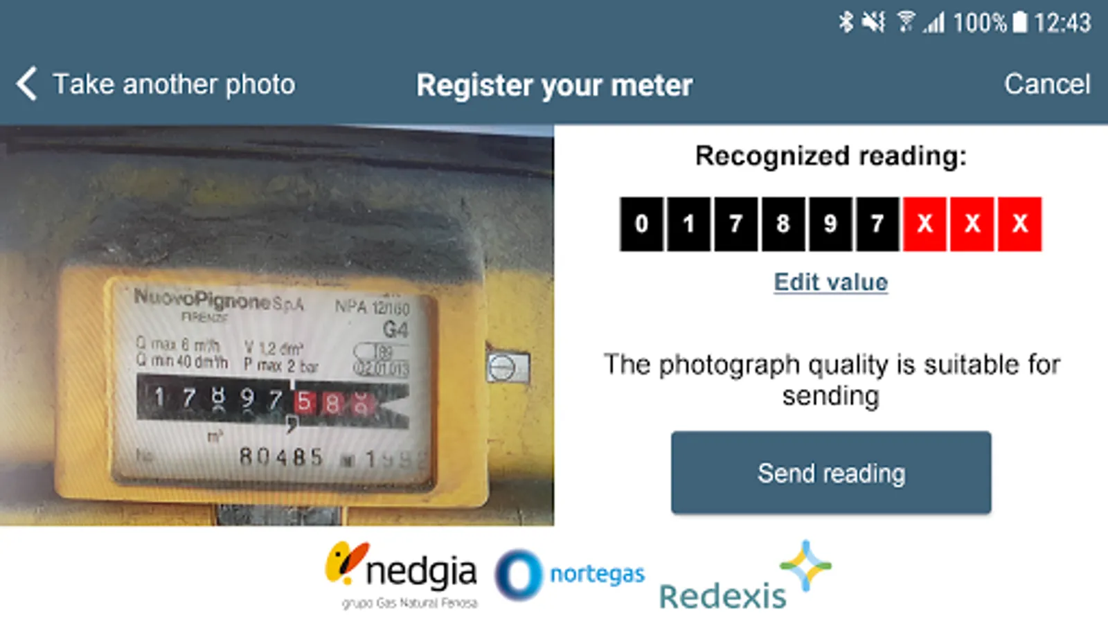 You can use this application to easily and conveniently send your meter readings if your distributor of gas is Nedgia (grupo Gas Natural Fenosa), Redexis Gas or Nortegas. Do it of comfortable and simple form.
