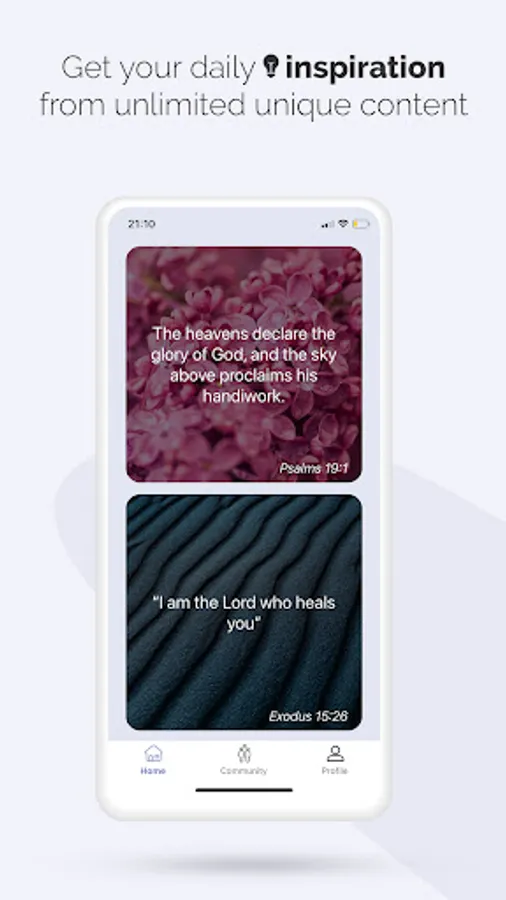 Join the community that can change your life for a stronger, calmer, and better you. Open Blessify anywhere to access motivational content that matches your current state and helps you to find strength in God.