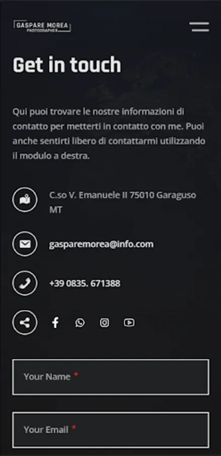 Gaspare Morea has been living and working as a photographer for over 10 years in his native country. The passion for photography was born in 2005 thanks to some training courses. In those years, in fact, he discovered the desire to capture everything around him in one shot, trying to impress emotions in an instant. The dedication and awareness of the enormous expressive potential of photographic art have stimulated the desire to grow professionally by attending refresher courses held by professionals of European and international prominence