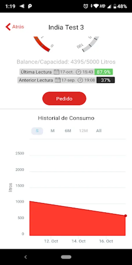- Monitor the level of gas in your stationary tank (percentage and liters).