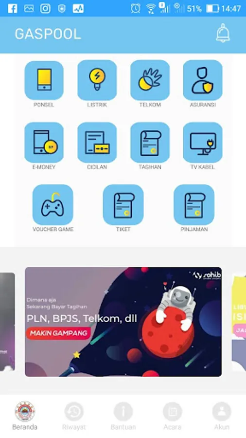 Sedangkan untuk Fitur fitur lainnya yang ada di aplikasi Gaspool antara lain :