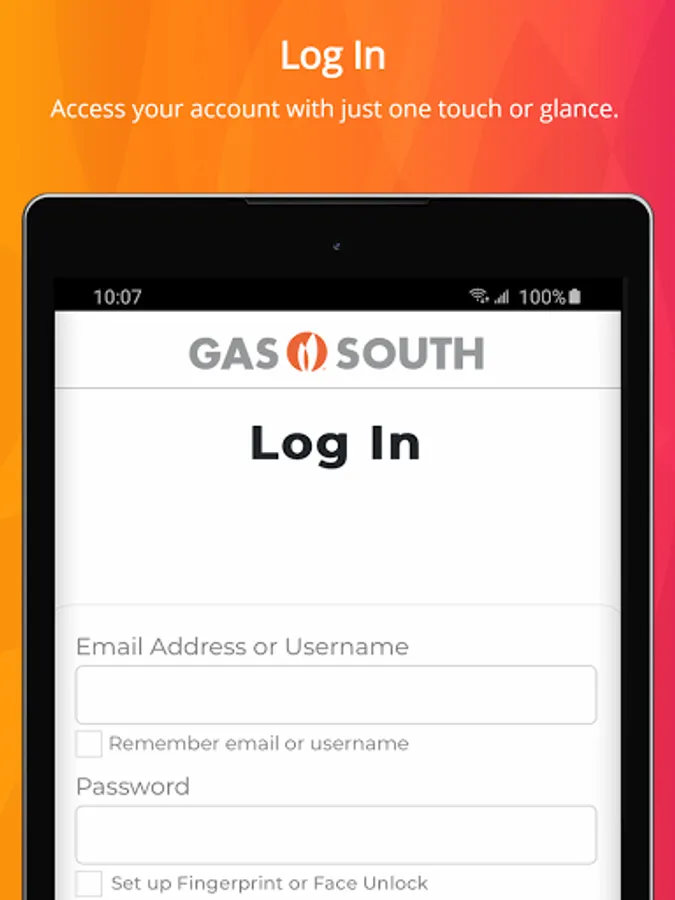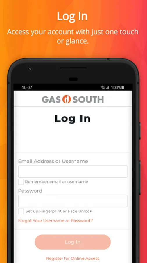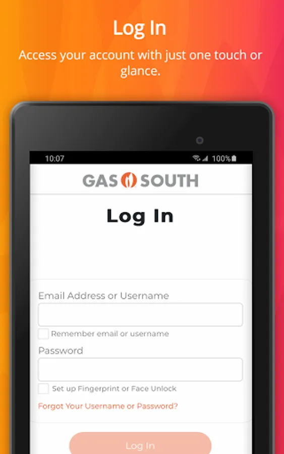 Conveniently access your Gas South account with face unlock and fingerprint recognition technology.