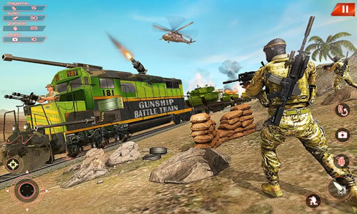 US Army Train Games Gunship Attack : Train Driving Games key Features: