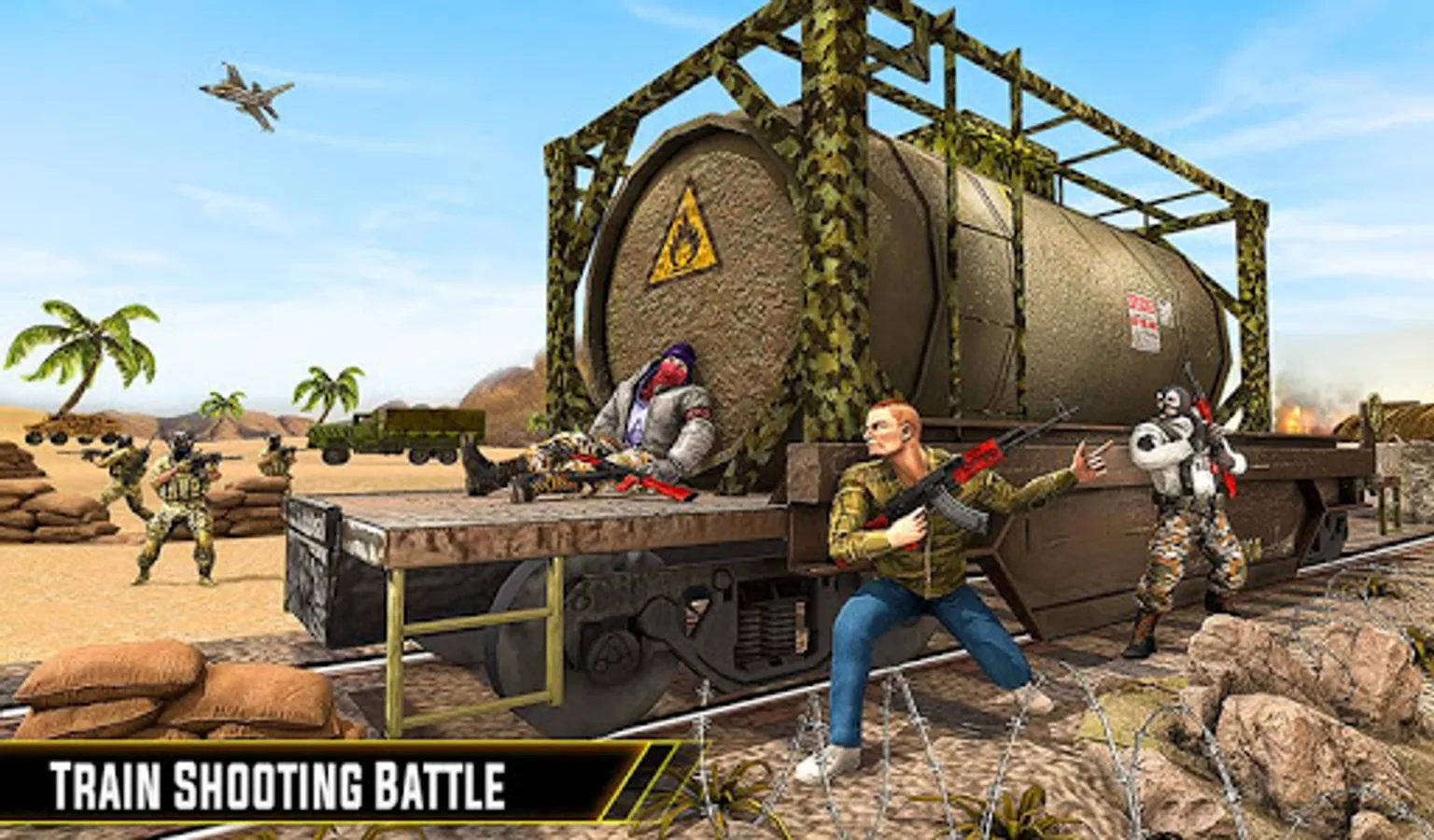 Welcome to secret missions of war games with heavy artillery, military tanks and other weapons in a train simulator. Show your expert fighting skills in train shooting games 3 D. Transport weapons through gun shooting games 3D from one army base to another army base in gun games train simulator. These train shooting games 3D will take you to a new world of army train driving thrills and adventures. Prove your gun shooting and army train driving skills in train shooting games 3D and take down the enemy in army train games train simulator of war games. In the field of train simulator military troops battle using powerful weapons and gun shooting games 3D in enemy attack of train games. Complete your tasks and missions to become number one commando hero in train shooting in gun games. Make the best strategy and gun shooting at your enemy in train driving games. You will face many challenges as it is hard to shoot a gun shooting on a moving army train in war games. Get hold of your gun, set target for enemy and pull the trigger to attack to defeat your enemy in train driving gun games. This is a highly classified mission of train shooting games. Keep yourself focused throughout this gun shooting military operation in a train simulator. Get the chance to explore the different parts of the country in train games .