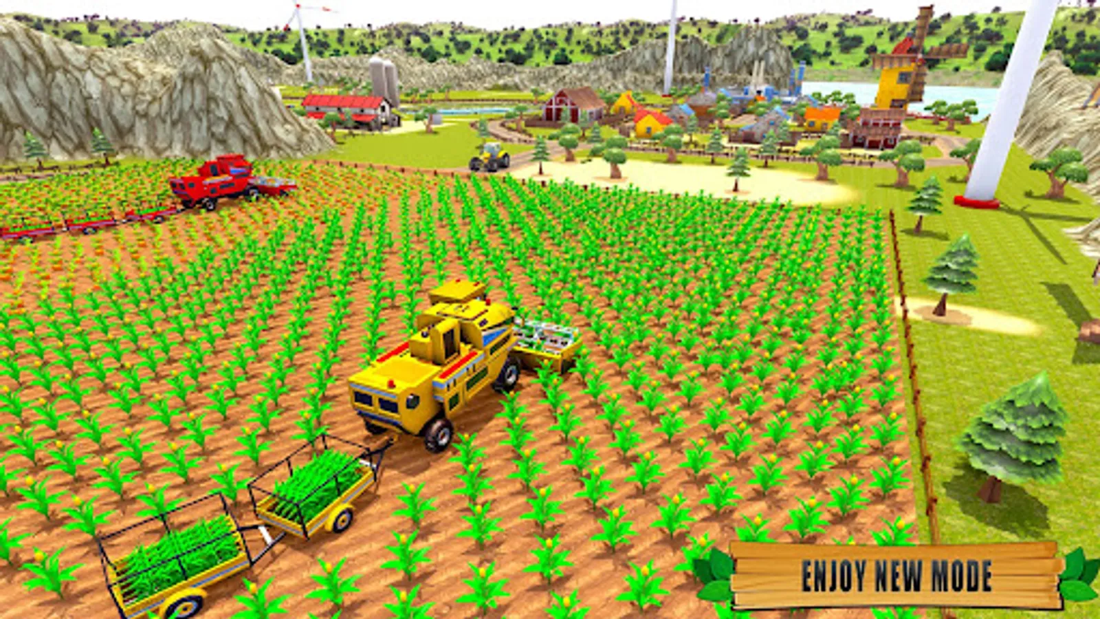 Enjoy the open-world of a farm driving game. Build it and take pleasure in playing games with real farming tractors that simulate 3D farming games. Drive a modern farming tractor simulator to harvest a top free crop and wood cutter also you can transport the farm goods to the farming market.