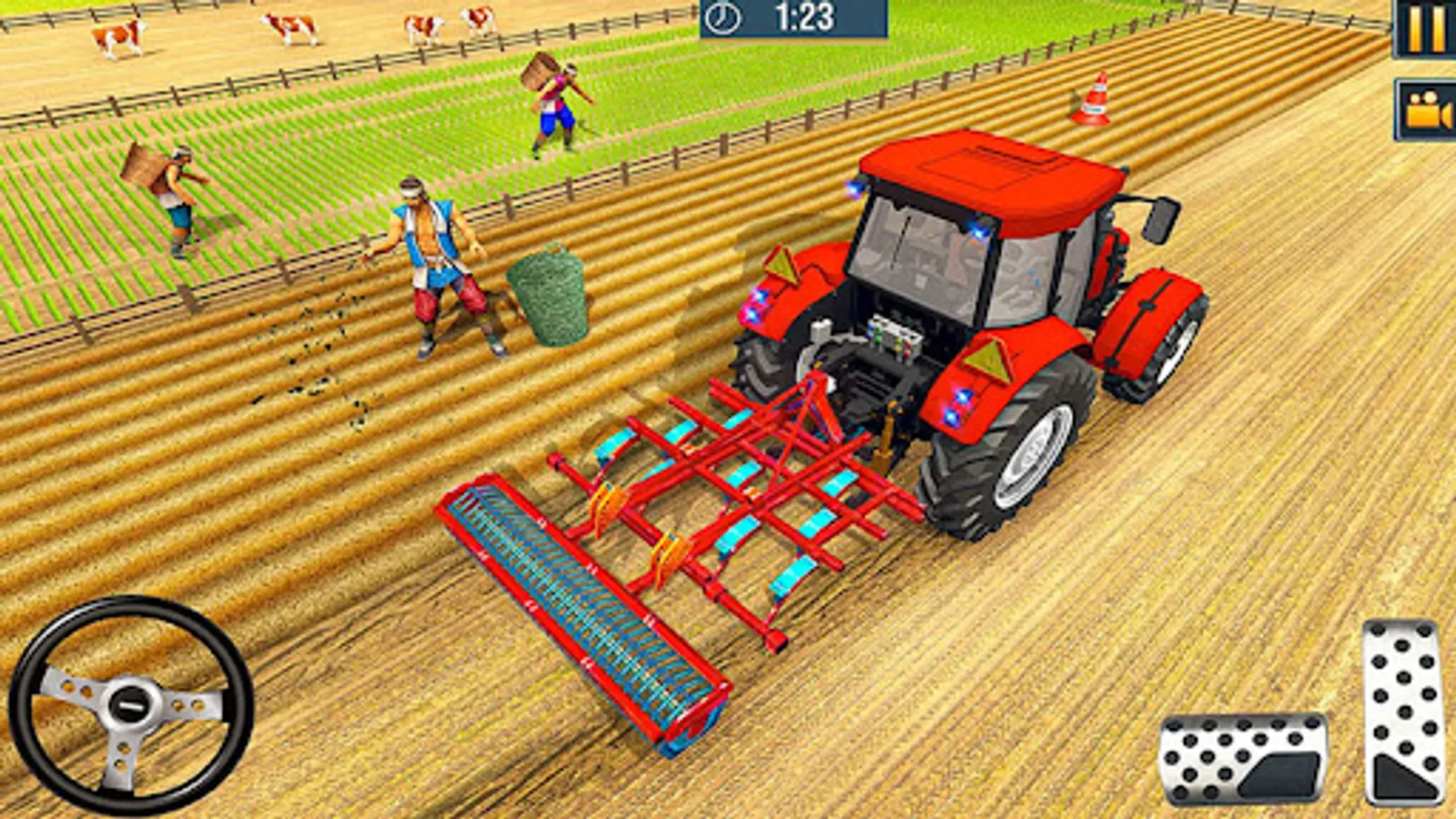 Driving a farm tractor simulator and new Real Tractor Games in which you can build 3D farms by using a farm tractor driving simulator that lets you operate a real tractor. Create your farmland in a real tractor driving simulator farming game and you can expand greatly. While playing 3D farm driving simulator games you can experience real life modern farming games. In a realistic tractor simulator game, you can plant, harvest, cultivate, and sell before buying additional fields to expand your harvesting in a modern farming game with a modern tractor driving simulator.