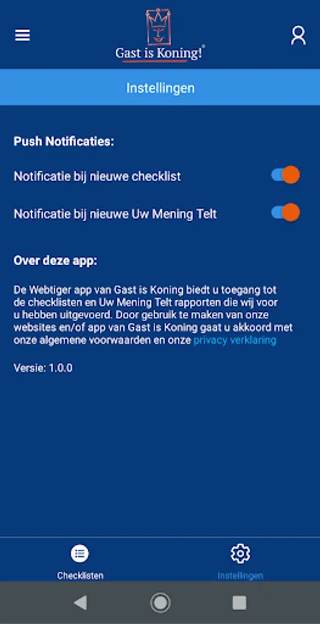 This app is exclusively for partners of Gast is Koning. Are you interested in our app and would you also receive a monthly Mystery Guest checklist in your app, so that you can optimize the hospitality within your business? Please contact info@gastiskoning.nl.
