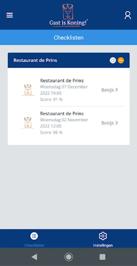 With this app, every entrepreneur who is affiliated with Gast is Koning has all results and checklists within reach. In this app they can receive and read the checklists of Mystery Guest visits, keep track of statistics and possibly share this content within their team.