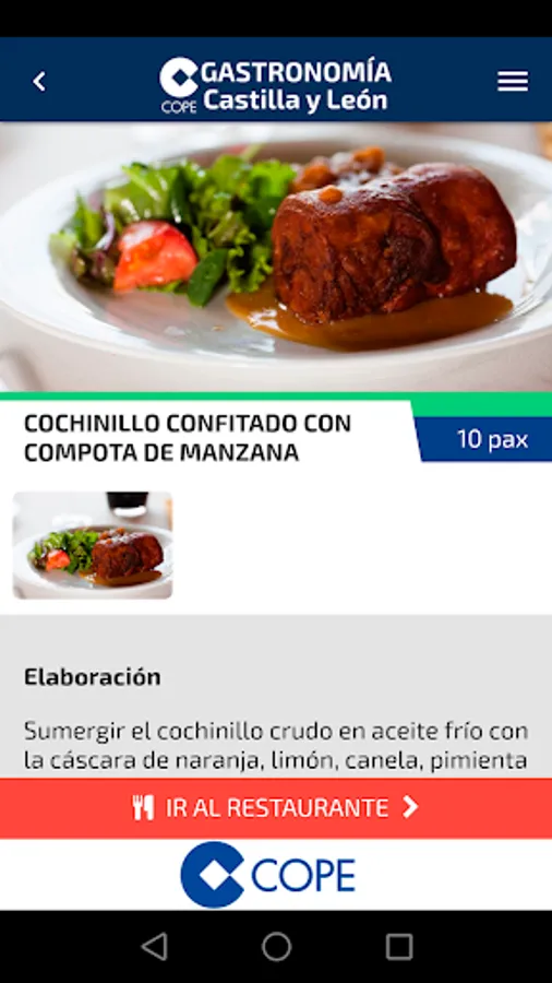 CyL gastronomy is the application of the Cadena COPE in Castilla y León with the recipes of the most outstanding restaurants in the region.
