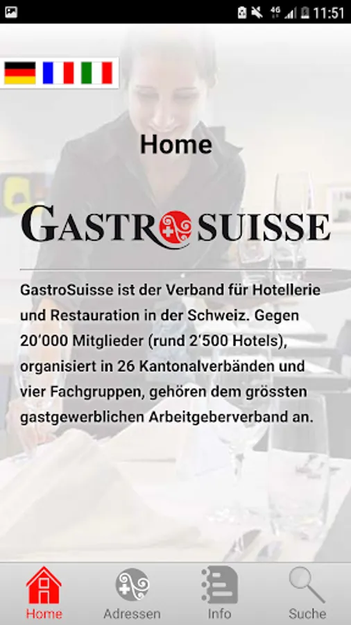 Die GastroSuisse-Gruppe bietet umfassende und massgeschneiderte Dienstleistungen für die Branche. Zum Angebotsspektrum von GastroSuisse, dem Verband für Hotellerie und Restauration in der Schweiz, zählen u. a. die kostenlose Rechtsberatung, die Schweizer Hotelklassifikation GastroSuisse und die Gastro-Unternehmerausbildung. Darüber hinaus vertritt der Verband die wirtschaftspolitischen Interessen seiner Mitglieder, engagiert sich stark in der Berufsbildung und pflegt das Image der Branche.