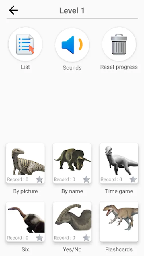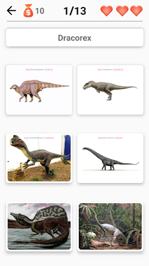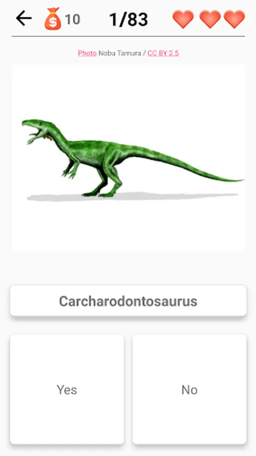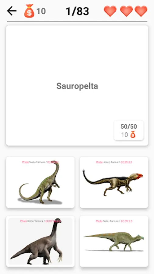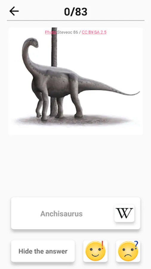 The dinosaur species are divided into two levels of based on the difficulty of questions. You can start dinosaur -Quiz with 83 well-known dinosaurs such as T. Rex and Stegosaurus and proceed with 82 rare dinosaurs such as Eoraptor and Ceratosaurus. This is the whole encyclopedia of Jurassic period!