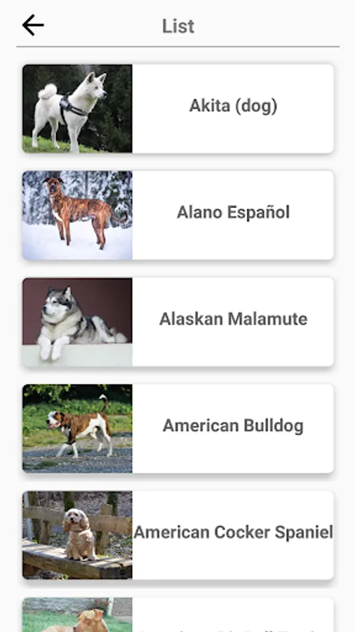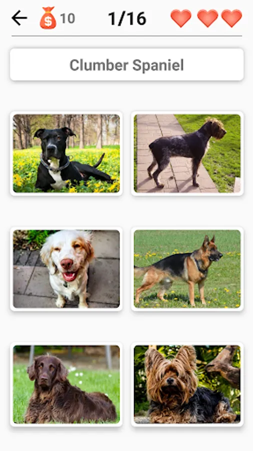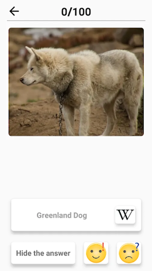 The dog breeds are divided into two levels of based on the difficulty of questions. You can start Dogs-Quiz with 100 well-known breeds such as Golden Retriever and German Shepherd and proceed with 229 rare dog breeds such as Affenpinscher and Karelian Bear Dog. This is the whole encyclopedia of dogs!
