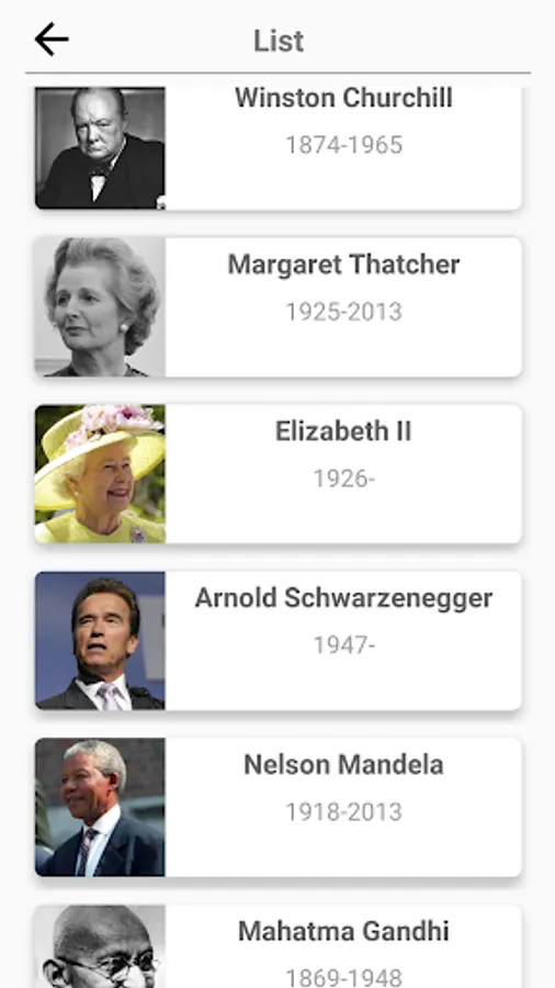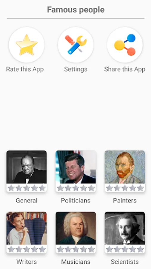 In this app you will find more than 550 most recognizable personalities in the world history, as well as modern celebrities: presidents and kings, composers and singers, directors, scientists, actors and athletes: John Kennedy and Winston Churchill, Antonio Vivaldi and Freddie Mercury, Alfred Hitchcock, Albert Einstein, Charlie Chaplin and Muhammad Ali. With Famous People you can learn them all!
