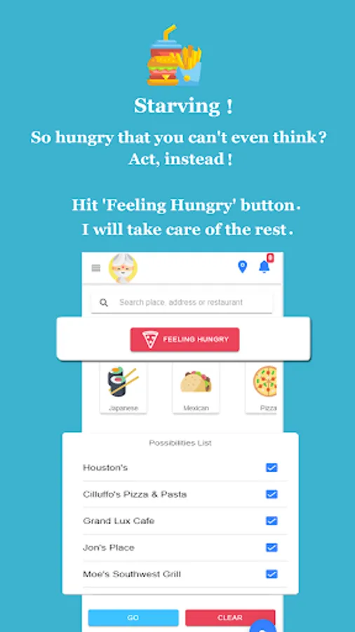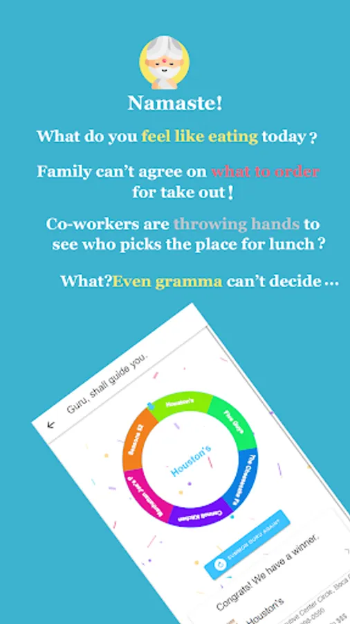 Hit 'Feeling Hungry' button and the Guru will populate the choices deep down in your mind! Also, known as 'randomly choosing restaurants near you'.
