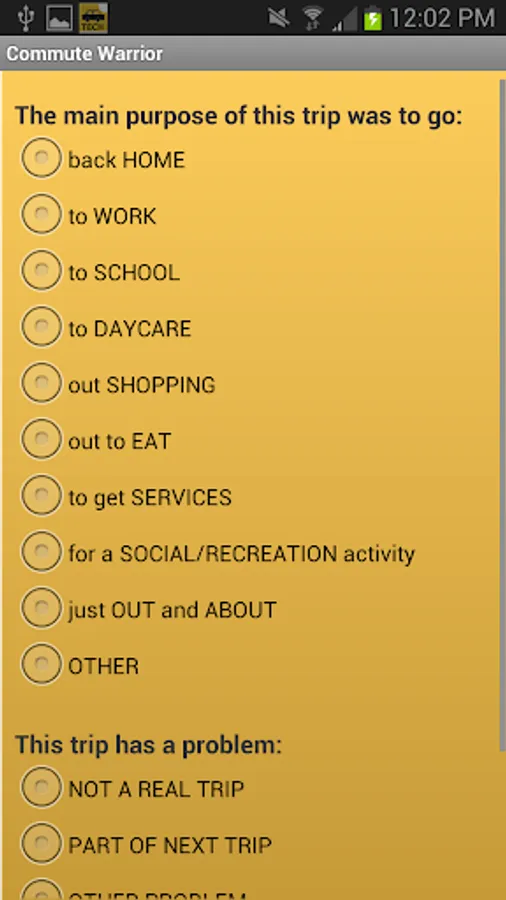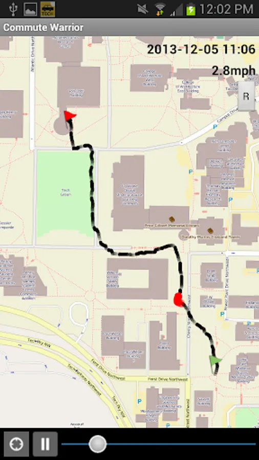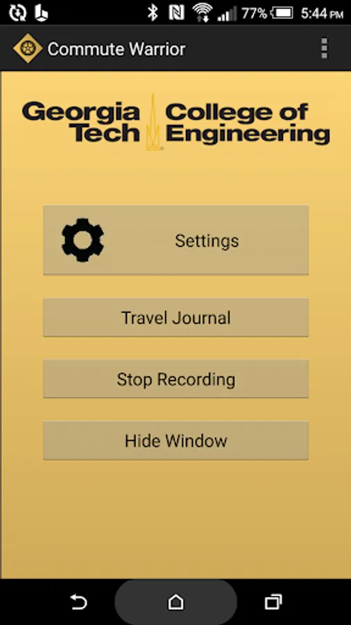 Commute Warrior allows users to track their daily second-by-second travel activity. The data collected by Commute Warrior will be used by Georgia Tech researchers to study travel behavior and estimate travel times across corridors. Travel monitoring is automatic, recording second-by-second position and satellite details without any interaction on the part of the participant. Commute Warrior monitors walking, bicycling, transit, and personal vehicle trips.
