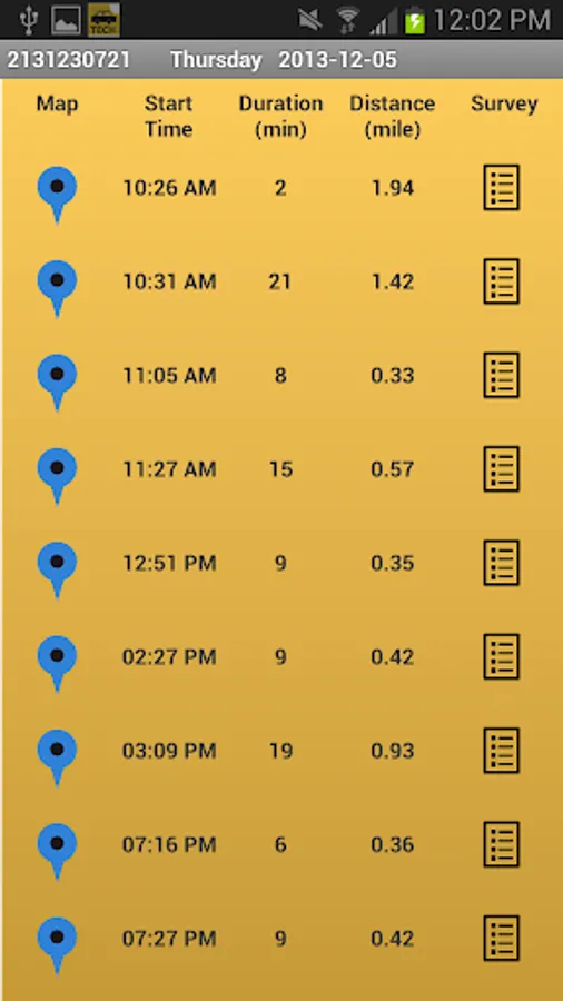 Commute Warrior users can review their travel patterns for any monitored day.