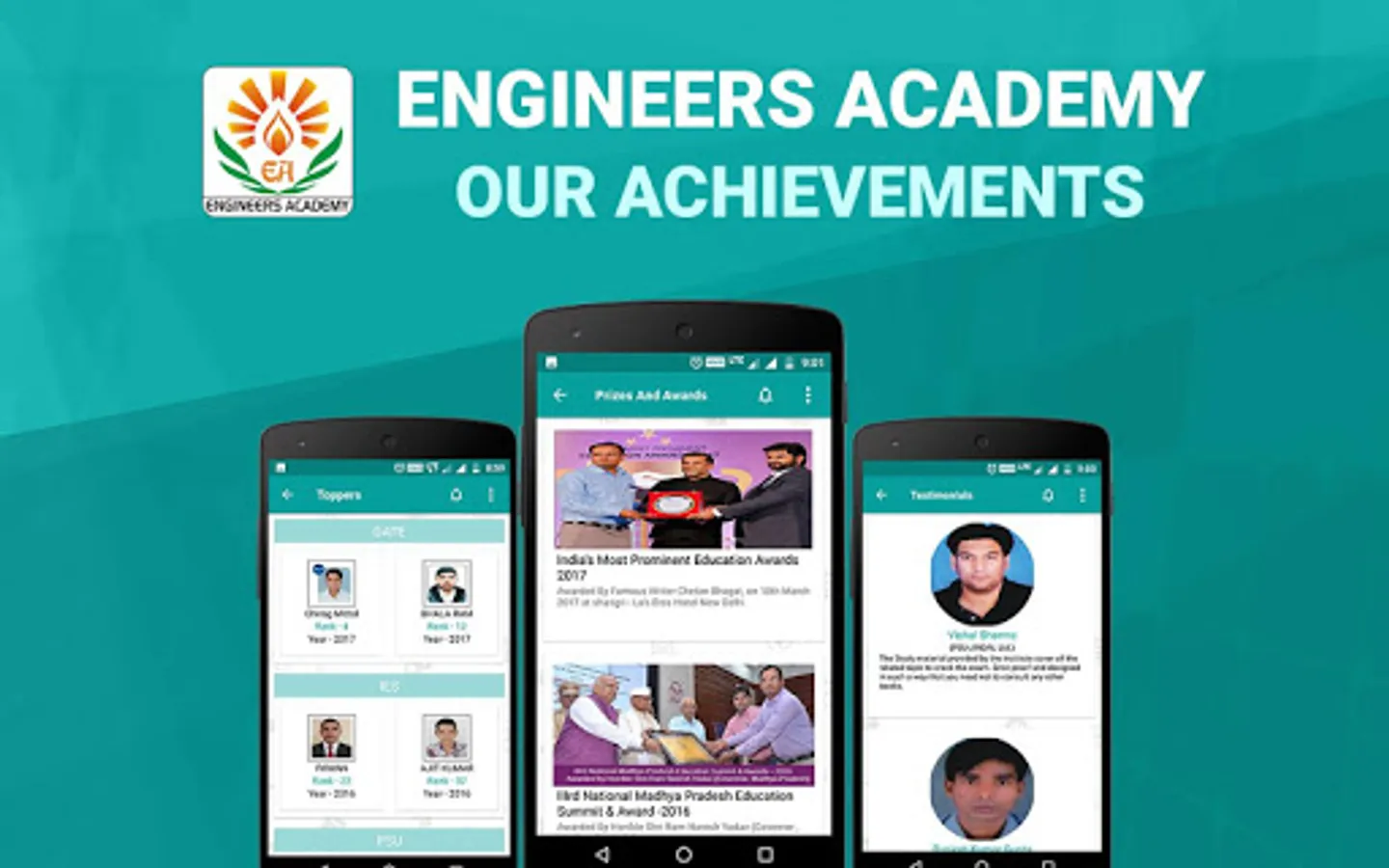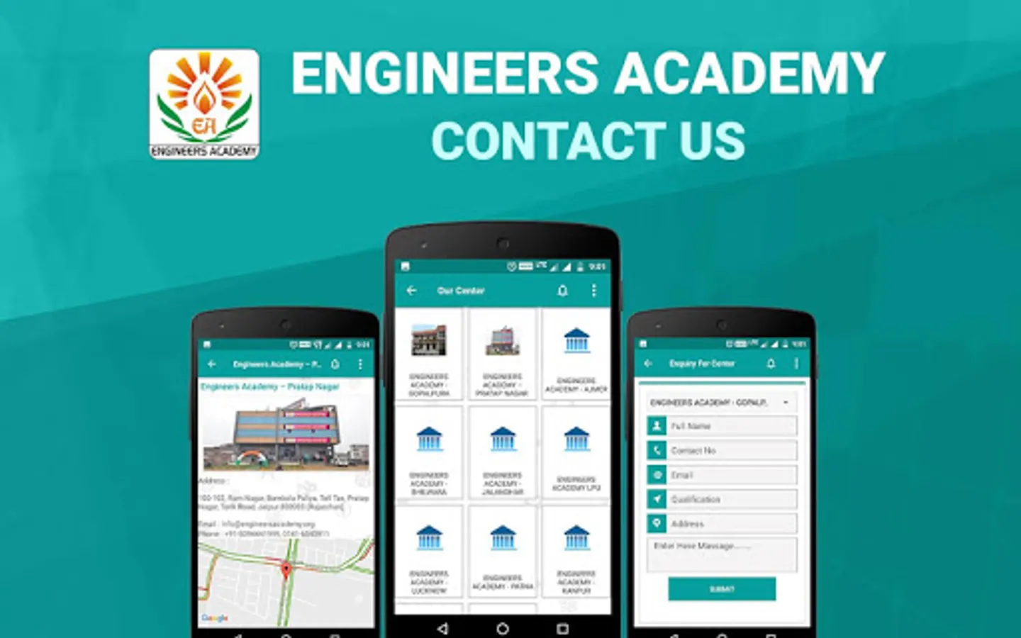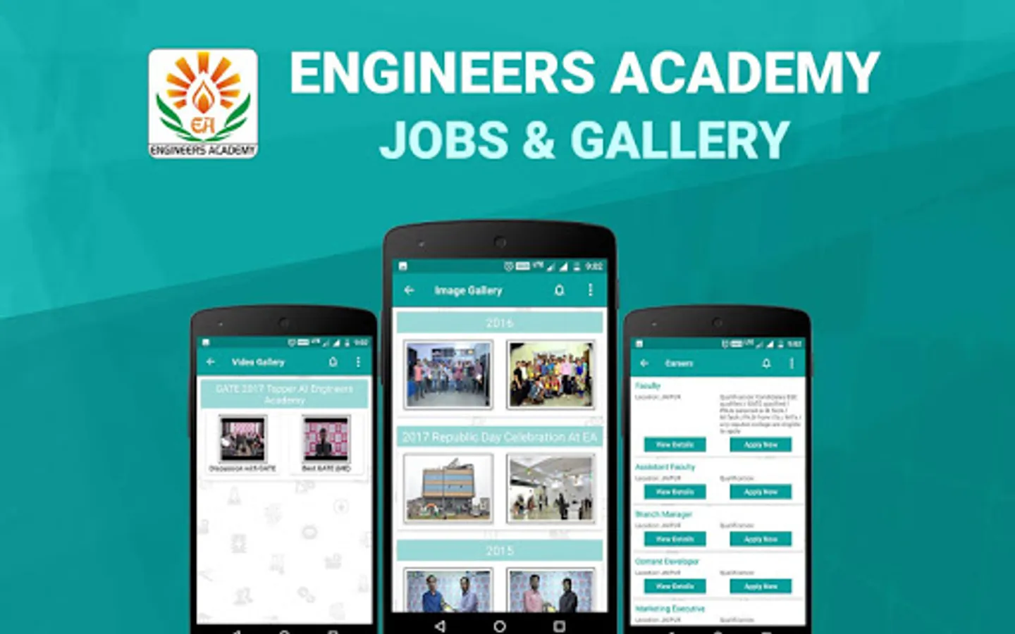 In Engineers Academy App user can get each and every details about our institute, management, new batches, courses offered, total selections, toppers, awards, testimonials, photo and videos galleries, jobs at EA, contact address, phone numbers, enquiries etc.