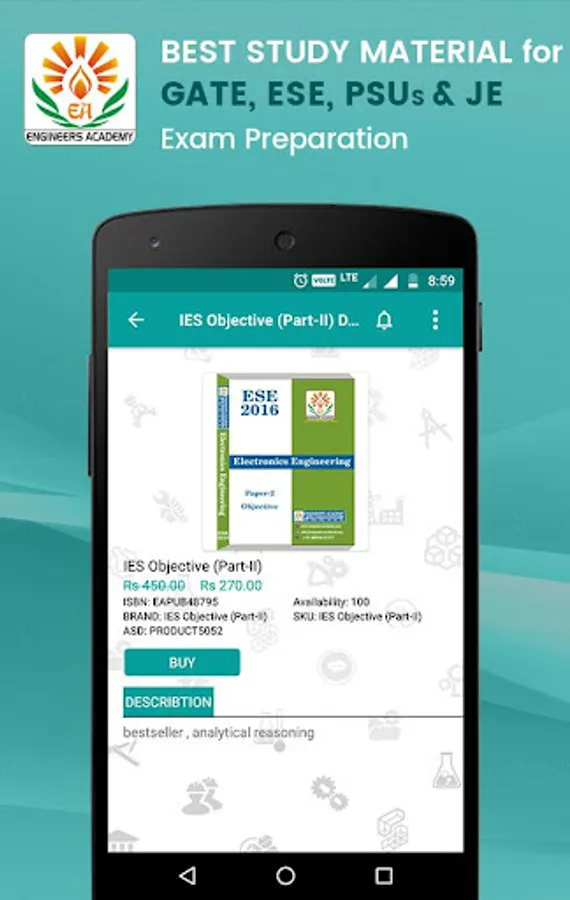 Engineers Academy Publication is renowned name for GATE IES/ESE PSU Junior Engineer and any technical books publications. User can buy or order any books from any corner in India from our app and pay online.