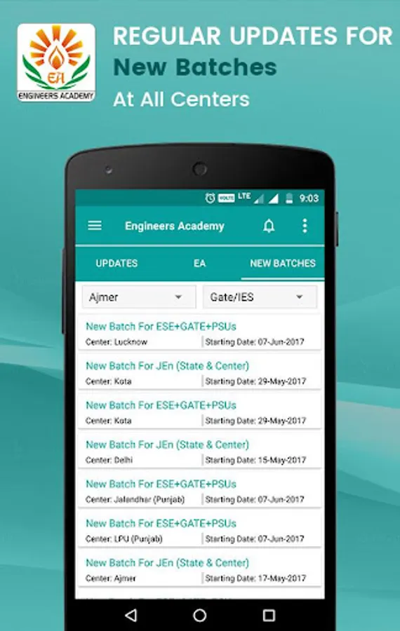 Engineers Academy students or other users can get regular updates from our all centers of Engineers Academy and about their regular new batches.