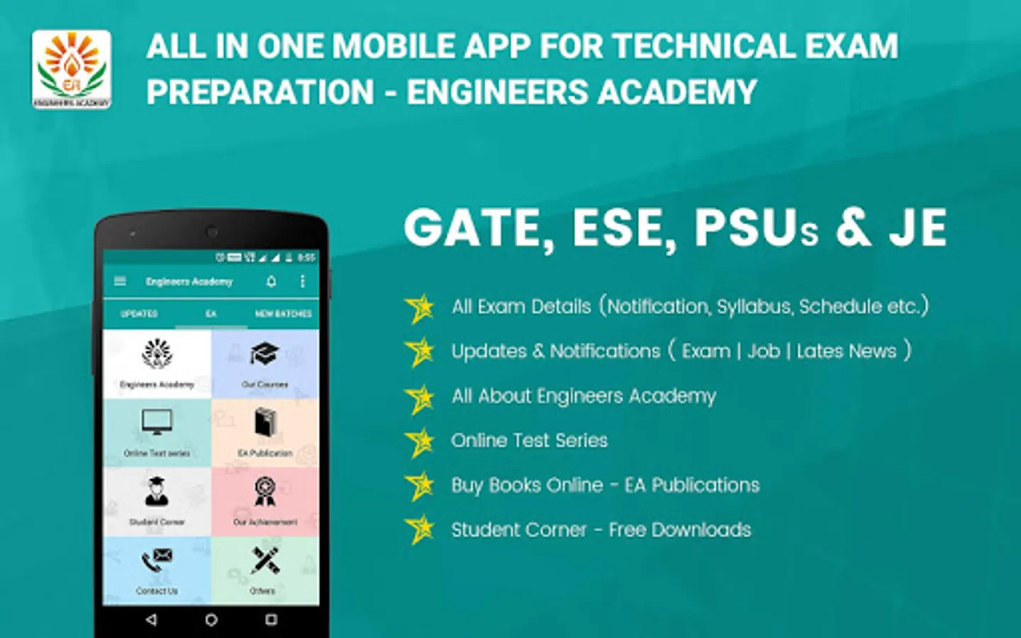 Engineers Academy is a leading institute in the field of various career oriented examinations like ESE/IES, GATE, SSC JE and PSUs like (BHEL, NTPC, PGCIL, ONGC, GASIL, IOCL, BSNL/JTO, BSNL/MT, DRDO, ISRO,DVC, DMRC, MTNL, SAIL, BEL, AAI, BARC etc) . Engineer Academy is committed to assure learning experience that will assist students to use their greatest potential to archive success in the entire career oriented competitive examinations. Engineers Academy’s mobile application is the largest exam preparation app for technical competitive examinations in India that provides complete details about exams, including latest updated exams details like Exam pattern, Eligibility criteria, Notification dates, Subject wise detailed syllabus, Cut off, Paper Analysis, Free Study Material, Free Mock test and online/offline test series of every exam.