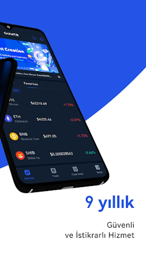 With GateTR, Your Door to Crypto, buy Bitcoin (BTC), Ethereum (ETH), Tether (USDT), Dogecoin (DOGE), Shiba Inu (SHIB) and more than 70 cryptocurrencies with Turkish Lira now! Fast with Gate.io Account Login to GateTR easily with your Gate.io account and transfer free fast crypto money between your accounts with Gatecode. Easily Buy Crypto & Sell Cryptocurrency in more than 70 crypto currency pairs easily with the SatGateTR mobile application, your favorite cryptocurrencies in one place. View anywhere.7/24 Bank TransferWith Vakıfbank and Fibabank, you can instantly deposit and withdraw Turkish Lira 24/7. With Safe and Transparent 100% Proof of Reserve, Gate.io quality is one of the world's most secure crypto exchanges and the industry leader in security since its establishment. Make your transactions safely with. Our users are secure with the Secure Asset Fund stored in cold wallets. Your account is safe with additional security measures such as SMS verification and Google verification. User-Friendly Interface Whether you are a beginner or a professional investor, GateTR offers an easy-to-use experience with its interface that serves all your needs. Earn with Referral ProgramInvite your friends and earn up to 25% of our commissions. Available CryptocurrenciesBitcoin (BTC), Bitcoin Cash (BCH) ), Ethereum (ETH), Ethereum Classic (ETC), Tether (USDT), Dogecoin (DOGE), Shiba Inu (SHIB), Cardano (ADA), Solana (SOL), Polkadot (DOT), Dai (DAI), TRON (TRX), Avalanche (AVAX), Polygon (MATIC), Chainlink (LINK), Litecoin (LTC), Decentraland (MANA), The Sandbox (SAND), Axie Infinity (AXS) and many more pairs with Turkish Lira. User Support with 24/7 Live Support If you have any questions or problems, we are always ready to help with our 24/7 Turkish customer support. Website: www.gate.com.trOur services are available in selected regions depending on the jurisdiction.