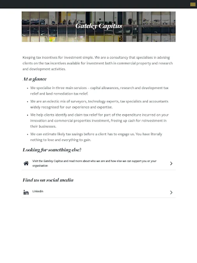 - Quickly estimate how much Capital allowance, Land remediation and R&D tax relief your business could claim using our intuitive calculators