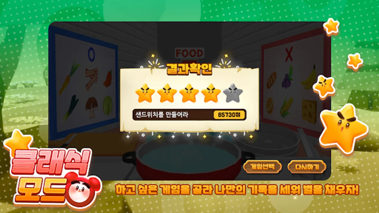 Fill in the stars in the classic mode where you choose the game you want to play and play!