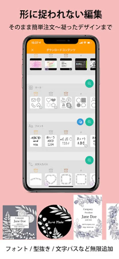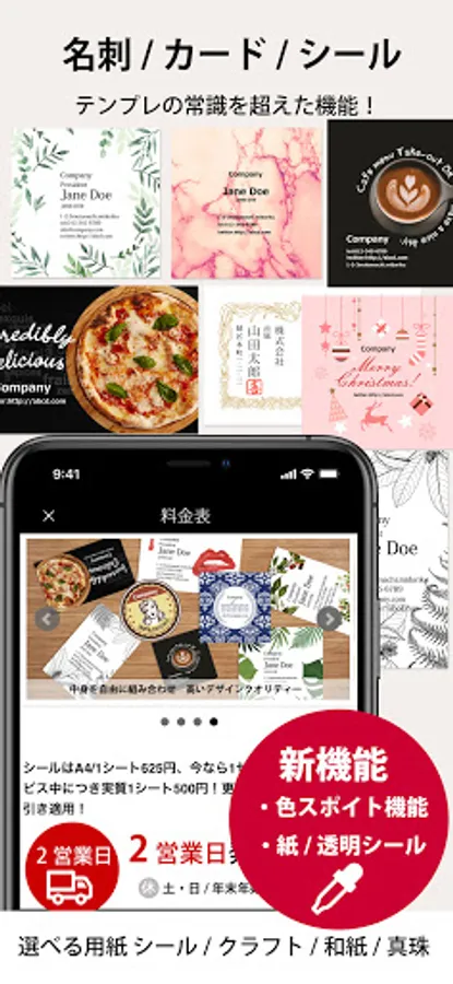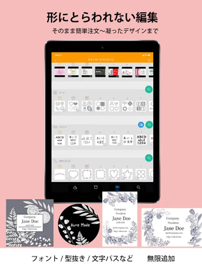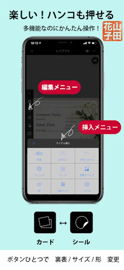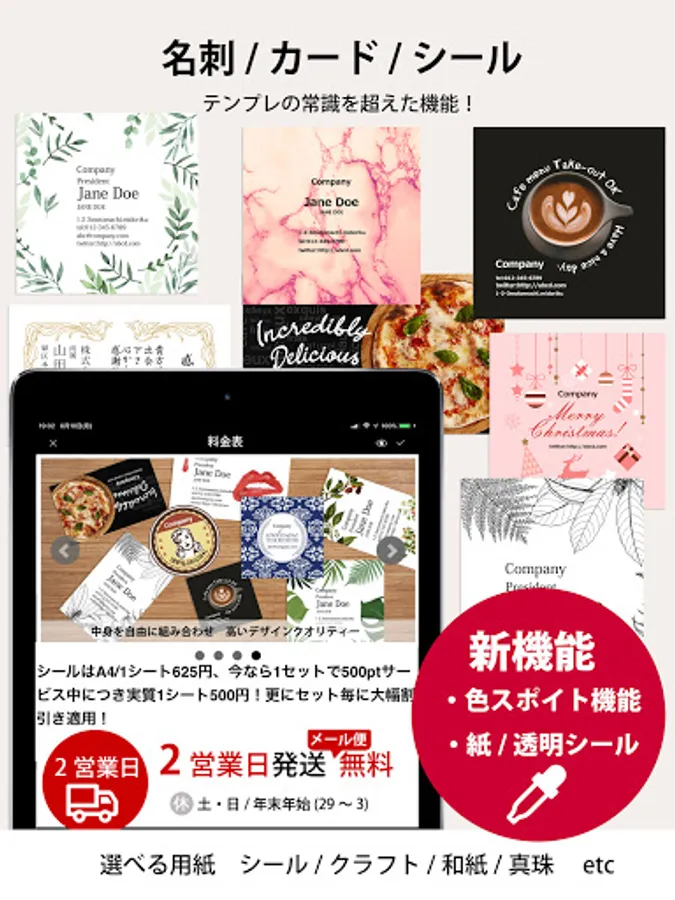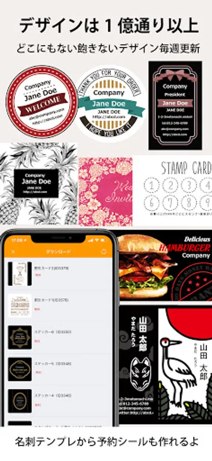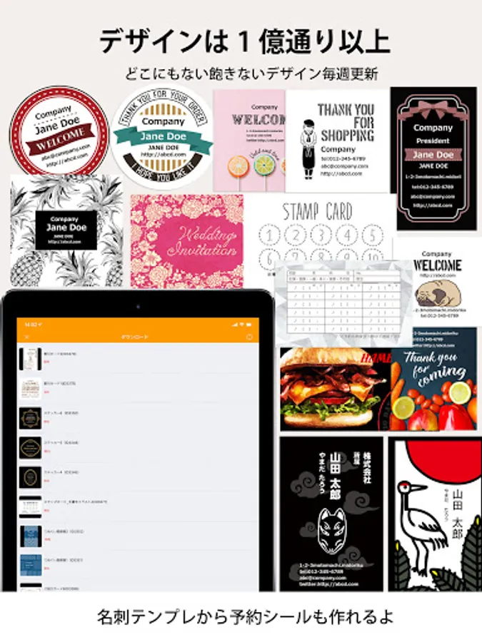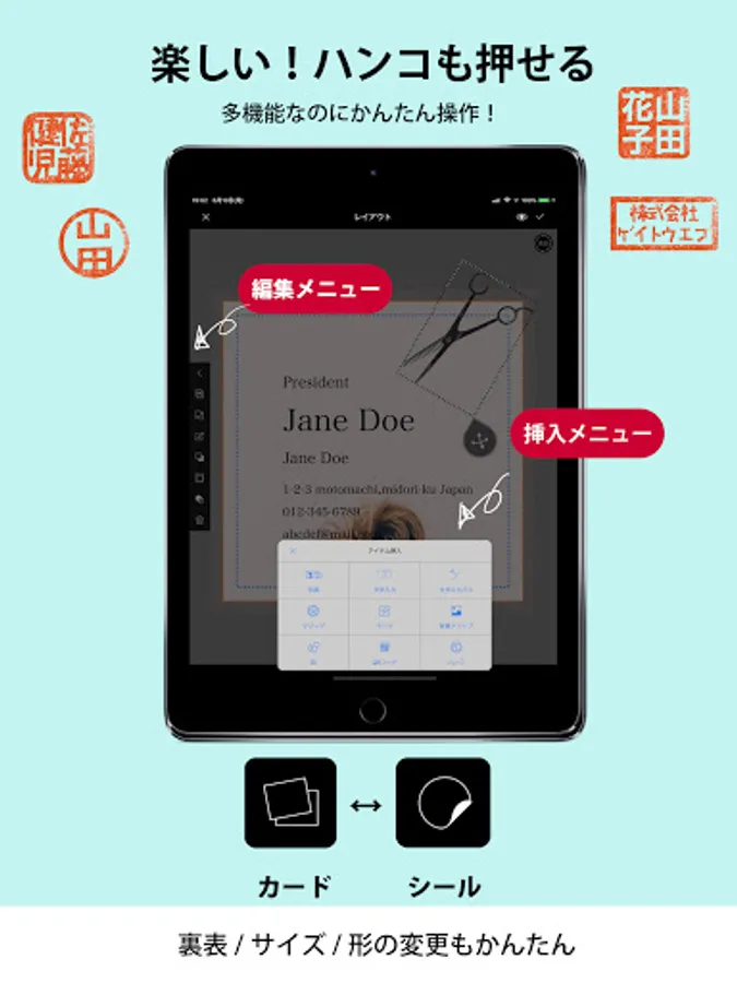 An app that can be designed with a sense even though it has high performance. Any template can be remade regardless of the shape of the template. Save drafts / back up data with the touch of a button. You can rest assured even if there is a sudden failure or model change. You can also use your own photos or generate a QR code from the app. It is also possible to insert the QR code of another company. You can add an infinite number of fonts. A stamp generation function and a dropper function have also been added for even more convenience. You don't need a printer or PC to print anymore. Design and print business card-sized cards anytime, anywhere!