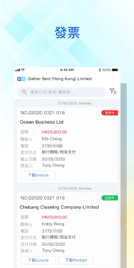 Invoice: View the invoice list and invoice details
