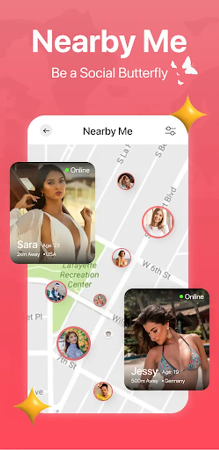 ﹘ Match your profile according to distance because we've mapped all Gather Dating & Live Stream users.