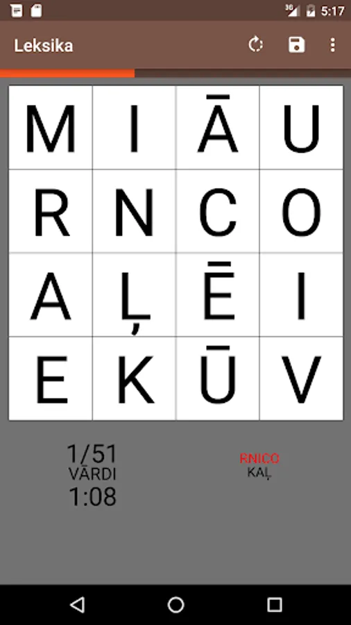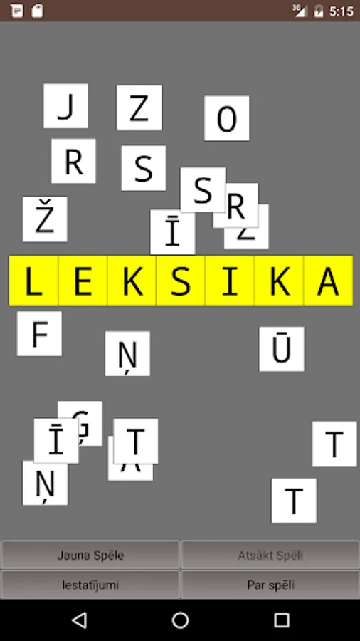 In limited time period find as many Latvian words as possible in board with 4x4 or 5x5 characters. See more details about this type of games in (http://en.wikipedia.org/wiki/Boggle).