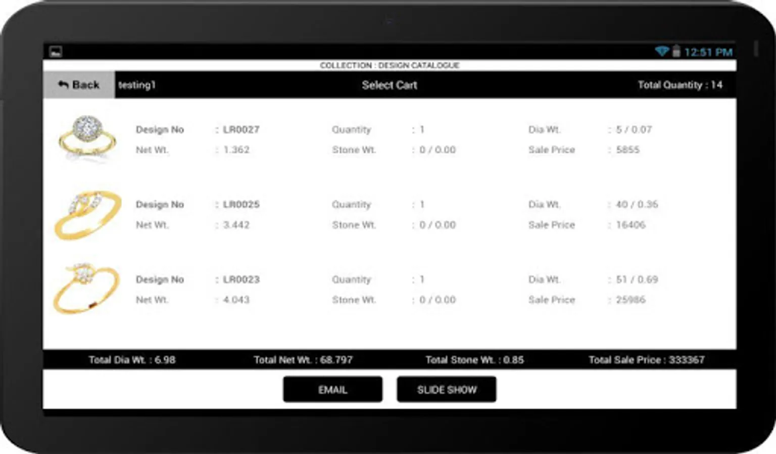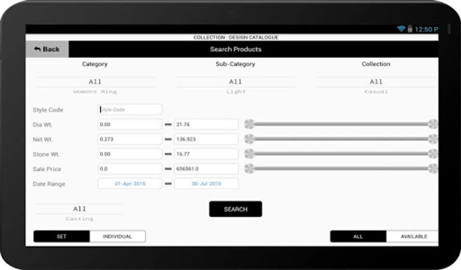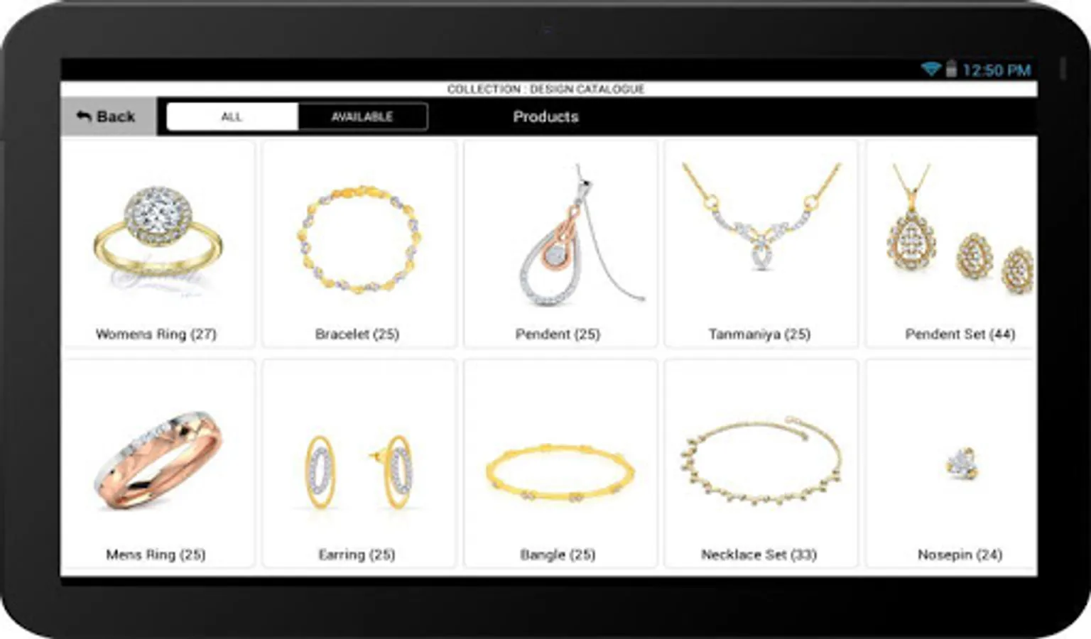 •An easy filter jewellery by different parameters like Weight, Category, Sub-Category, Collection