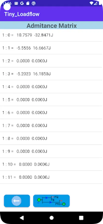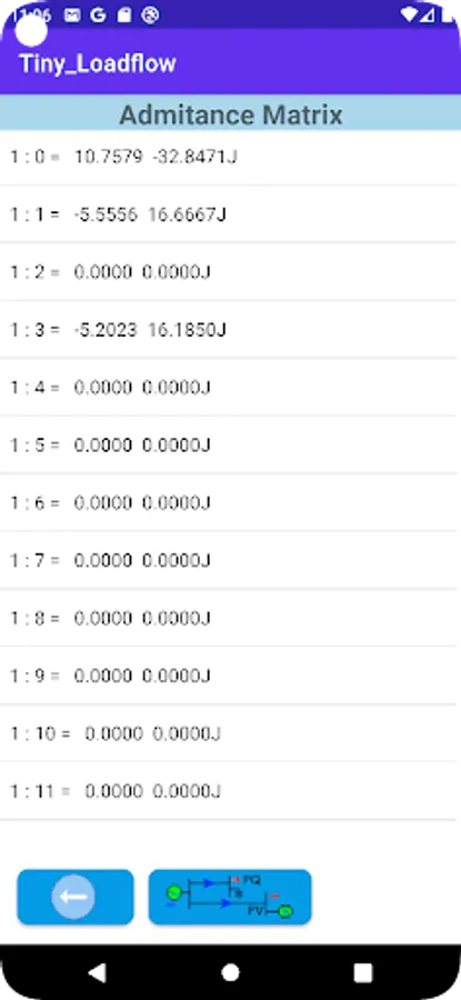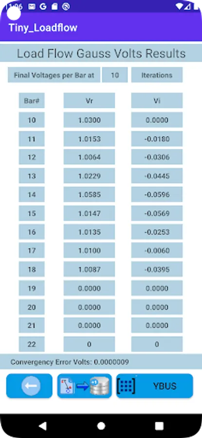 -Consult results of voltages per bar, power lines flows and admittance/Jacobean matrix.
