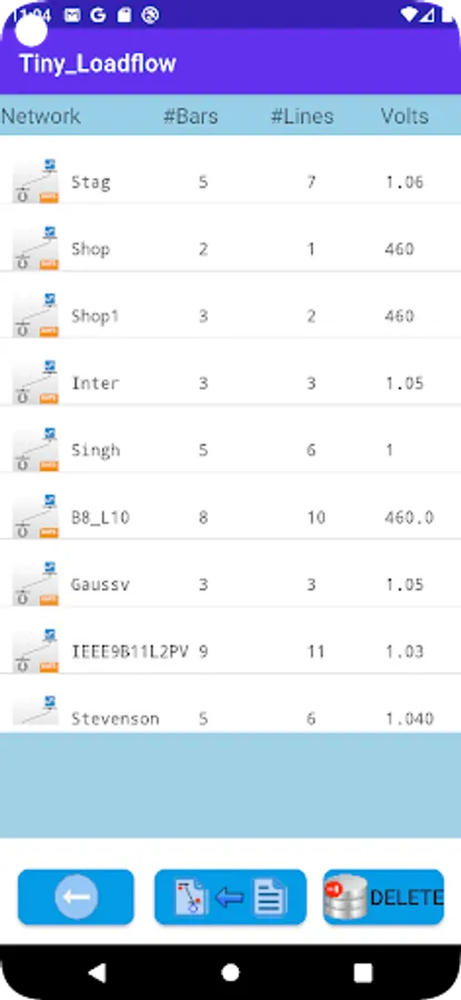 -Save and retrieve stored data, add & delete bars and lines, easily defined loads, voltages and lines variables.