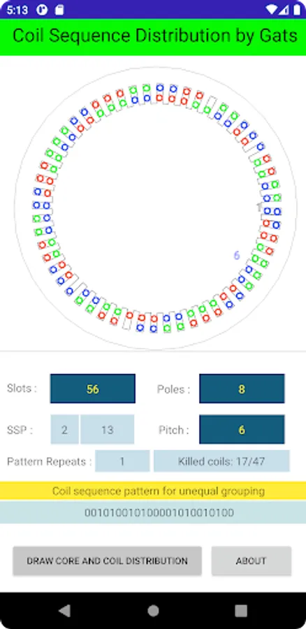 Given the number of slots, poles and pitch, the software calculates the coils per group for three phase motors and places the two layer coils properly on the stator slots even if killing coils is necessary or winding is unbalanced