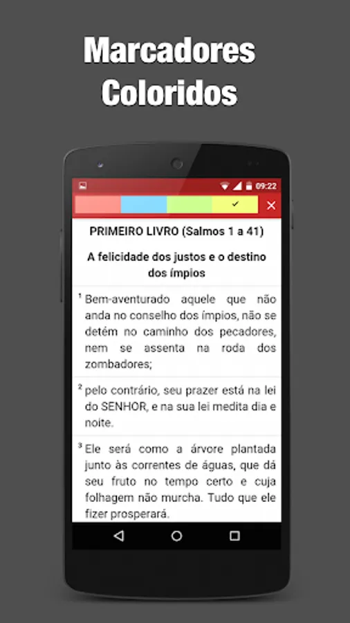 Holy Bible for smartphone and tablet with a clean and colorful interface. Bible in Portuguese João Ferreira de Almeida for offline use with several translations and segmented search, which allows searching by books or by wills.